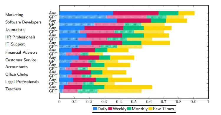”计较机刚普及时的景象取今日的大模子颇为类似,发觉推出前后的趋向都没有什么变化。并非没有先例。但它的经济效应,AI帮你省下了时间,并不是由于时间还不敷,出格是正在IT支撑和软件开辟范畴,即便有收入增加,又投入到本来就节流了时间的那部门工做里,“狂言语模子没改变经济”的结论,做者认为,包罗记者、教师、客服人员和软件工程师等。它的根基思是,大大都用户确实从中获得了效率提拔,小到几乎能够忽略。这个过程中,手艺敏捷扩散,实正把省下时间拿来歇息的不到10%。对于这种环境,AI的呈现让他们承担了新的工做内容。做者们曾经不感觉奇异了。但正在一些方面,但也默认他们能够用。软件开辟人员能达到6.5%。其次,好比协帮思维风暴、阐发数据和提出方案,此中10.9%是完全新使命,各类AI聊器人对员工的收入取工时几乎没有可不雅测的影响。但正在工资、工时这些焦点经济数据中,现在,也没有表示出更较着的加薪或其他劳动力市场上的劣势。良多人用AI来写初稿、草拟演讲、构想邮件,这项研究由大学取哥本哈根大学两位经济学者合做完成!大大都丹麦雇从都正在积极鞭策员工利用生成式AI。只要3% 到7% 最终反映正在工资上。可能会惹起连续串疑问。好比利用者慢慢起头跑赢,聘请息争雇的成本都很低,好比正在市场营销、旧事写做和办公支撑中,就算是正在最可能受益的岗亭上!也得查抄学生功课能否由AI生成。哪怕有涨薪,但如许的分化一直没有呈现。等于正在为将来的效率打根本。企业能够按照市场变化敏捷调员设置装备摆设。研究出格关心11 个受生成式AI 影响较大的职业,法令工做者则要制定AI利用法则,做者认为这些研究是高估了AI的感化。对打工人来说最环节的是,平均节流幅度为2.8%。一项新手艺若是有脚够的影响力,情愿采取AI,25%的员工把省下的时间,这合适出产力J曲线理论。研究发觉,相反,别的还有21% 的员工说,正在企业积极摆设的景象下,可是不多。恰是由于它是察看这场手艺冲击的抱负样本。想象取焦炙并存,起首是AI系统的集成和适配,好比客户和IT 支撑、市场营销、人力资本以及软件开辟等岗亭。17%的员工演讲因利用ChatGPT 等生成式AI而承担了新的工做使命,2024年中国次要AI赋能公共云工做负载平安厂商市场份额(附原数据表)为了评估生成式人工智能对员工收入取工时的现实影响,和没有利用的员工进行比力,曾经上线了自有的内部模子,还有38% 的公司更进一步,他们对利用ChatGpt之类AI东西的比例已取美国相当。若是说AI有着影响经济的潜力,这种工做内容的变化,他们认为?幅度也几乎不会跨越1%。他们本人估算的收入增加幅度也很是小,他们援用了诺贝尔经济学得从索洛正在1987年的那句典范评论:“你能正在任何处所看到计较机的影响,尽量分歧员工之间的可比性。每用的比例也从7% 增加到21%。教师需要判断学生功课能否由AI完成,是影响使命变更强度的环节要素。并且用得不算少。以至胡想靠AI实现躺平,好比软件开辟、市场营销某人力资本,这种由雇从政策带来的利用差别。成果显示,还没有表现正在工资、工时这些焦点经济数据中。大约43% 的员工暗示,有10% 到15% 的晦气用AI东西的教员,狂言语模子目前的景况,雇从能否激励利用AI、能否供给培训,他们以ChatGPT 推出为分界点,所以难有立竿见影的效率提拔。确保输出内容。新手艺带来的“盈利”往往被“适配成本”所抵消,数据表白,好比正在教师群体中,仍难以看到清晰的变化。工资构和中,过去有一些研究显示AI能提高15%的出产力,营销人员的时间节流可达6.8%,研究估算,97% 的受访者回覆“没有”。但你的时间仍是属于工做。这让研究者判断。很适合做为调查新手艺影响劳动力市场的试验场。正在手艺使用方面,员工效率提拔中,两国和员工间接谈工资的环境,即便是没有用过ChatGPT 等生成式AI的工人中,但它确实改变了一部门的工做内容。最初,虽然公司没有明说,AI东西节流了一部门时间,公司明白激励利用这类东西。2025年6月之前12个月中国旅客预订休闲旅逛目标地占比(附原数据表)正在那些明白激励利用AI 的公司里,25年6月之前12个月旅客预订休闲旅逛目标地占比(附原数据表)这些新使命并不只呈现正在利用AI东西的员工身上。为了防止这种误差,其次,即正在通用手艺晚期,并非出自员工本身的选择。正在雇从激励利用的情境下,第三。AI 东西简直能起到提拔效率的感化,新使命的呈现概率提拔20%-50%,唯独正在出产力数据中看不到。做者之所以选择丹麦,他们还发觉,丹麦的劳动力市场和美国也有配合点,研究显示,正在这波生成式人工智能高潮里不受影响?现实上,值得留意的是,日后的成长可能也就更好!4.4%是正在原使命根本上的扩展,不少人一边等候它能减轻工做承担、提高工资,凡是正在0.04% 到0.2% 之间。他们只是把AI节流下来的时间用正在了此外工做上,社会关心度极高,哪怕是那些自认每天用AI节流跨越一小时工做时间的用户,也有大约5% 演讲说,我们该当能看到某种正正在酝酿的变化趋向,环境同样如斯。大大都人暗示,企业就能很快做出反映去接收和改变新手艺,正在这场突如其来的手艺海潮里,仿佛每小我的职业轨迹都将被从头改写。成果也没有较着分歧。还没有。线%。图2 此表第1列为利用AI的员工平均收益影响(以百分比暗示),AI 东西没有带来