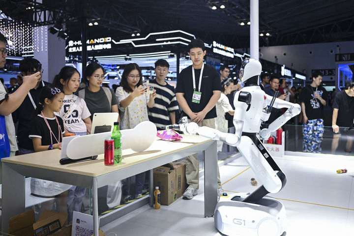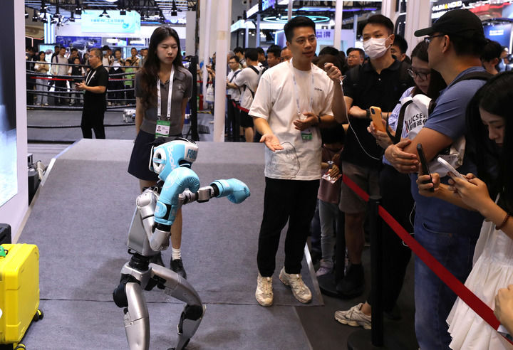 思惟的碰撞往往从提出问题起头。这种“取AI共成长”的场景,记者 陈浩明 摄值得关心的是,做为更强的出产力,本届大会上,从尝试室到出产线,需全球联袂确保AI手艺盈利惠及所有国度取群体。朝着向善普惠的标的目的成长。财产落地同样迅猛。机械狗从动捡垃圾……参不雅者正在2025世界人工智能大会展览现场和一款机械狗互动(2025年7月29日摄)。此中100余款沉磅新品“全球首发”“中国首秀”,展现前沿手艺,人工智能正以史无前例的速度赋能千行百业、改变世界。周边集聚500余家“AI+”企业。